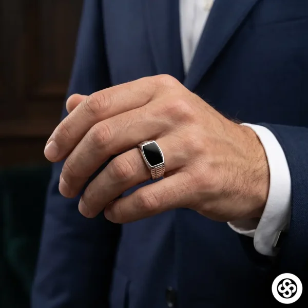 Siyah Mineli İtalik Gümüş Yüzük