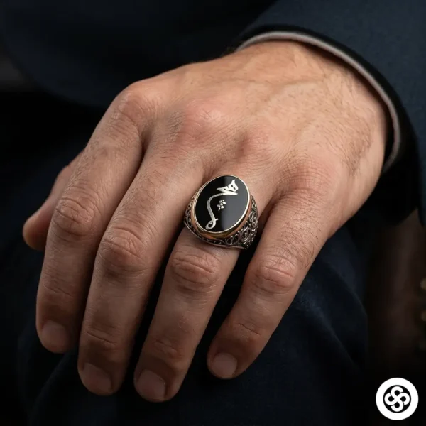 Elif İşlemeli ve Motifli Erkek Gümüş Yüzük
