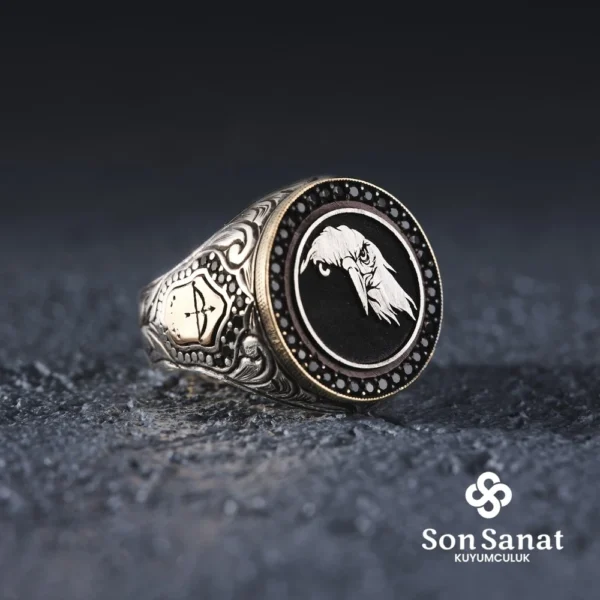 Gravür Göverseli Kartal Gümüş Erkek Yüzük