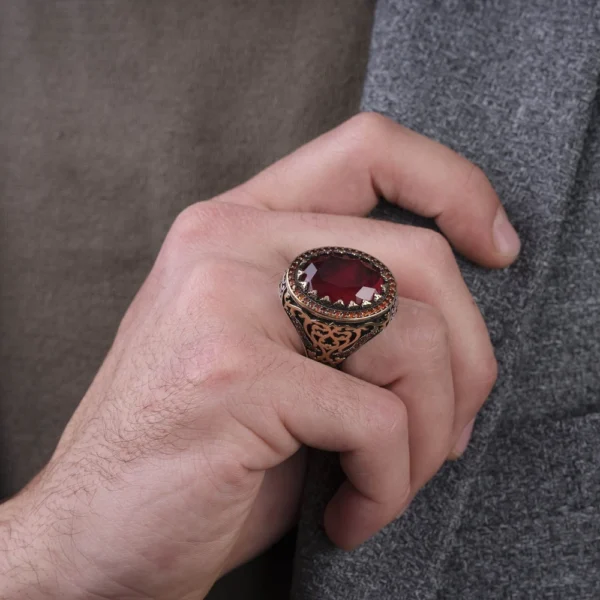 Garnet Kırmızı Paraiba Gümüş Erkek Yüzük