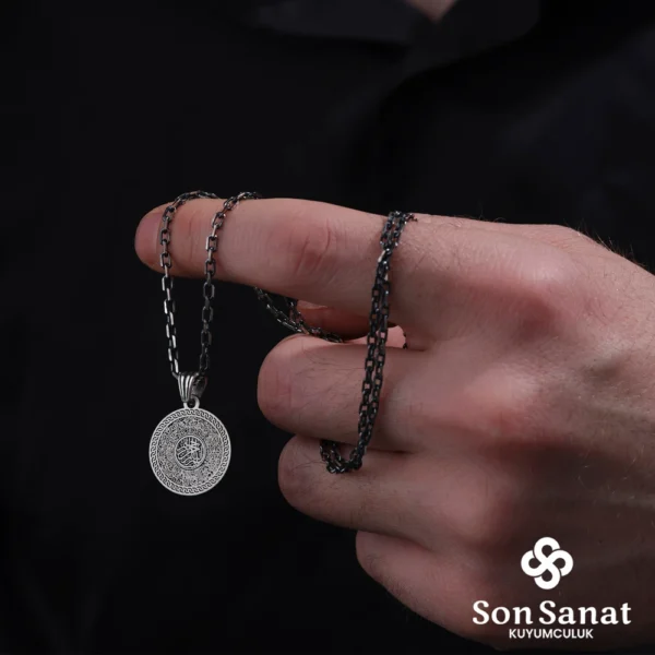Yuvarlak İnşirah Çift Taraflı Dönmeli Gümüş Madalyon