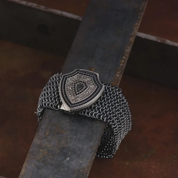 Zırh Örgü Kalkan Gümüş Bİleklik