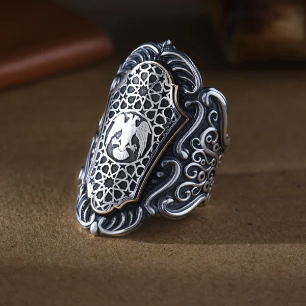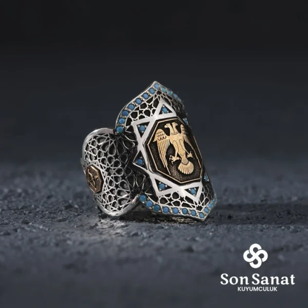 Selçuklu Kartalı Zihgir Erkek Gümüş Yüzük