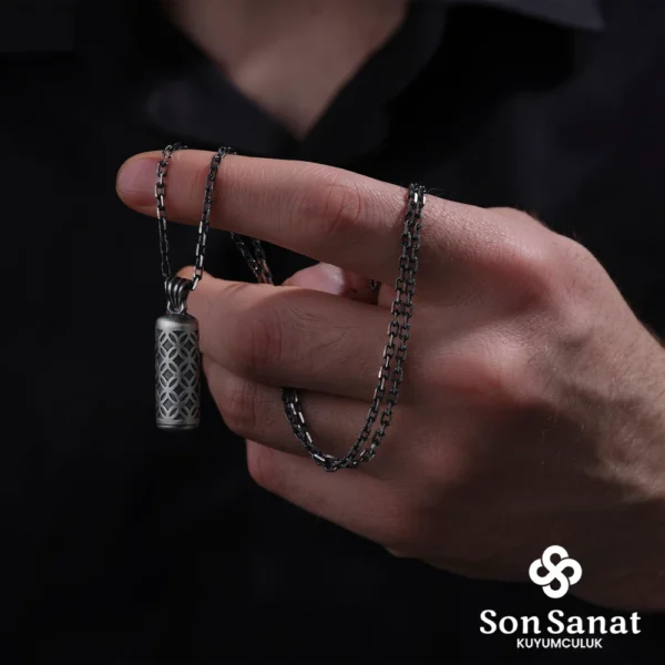 Silindir Gümüş Cevşen Kolye