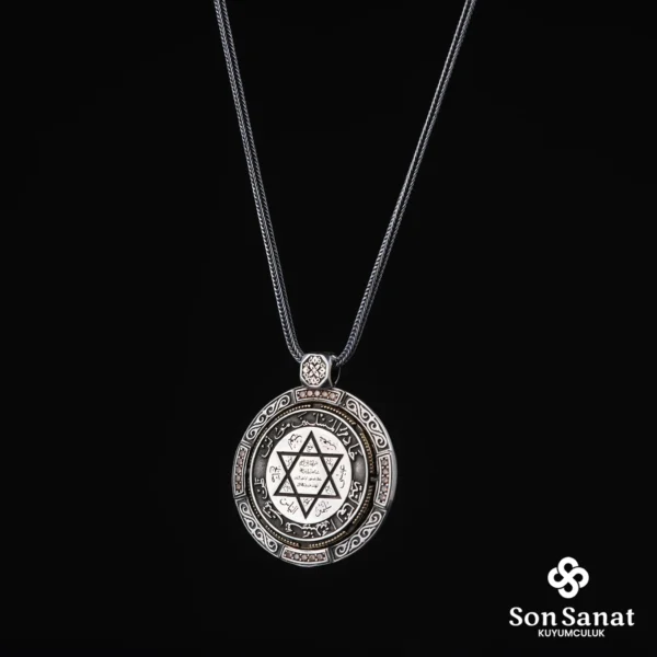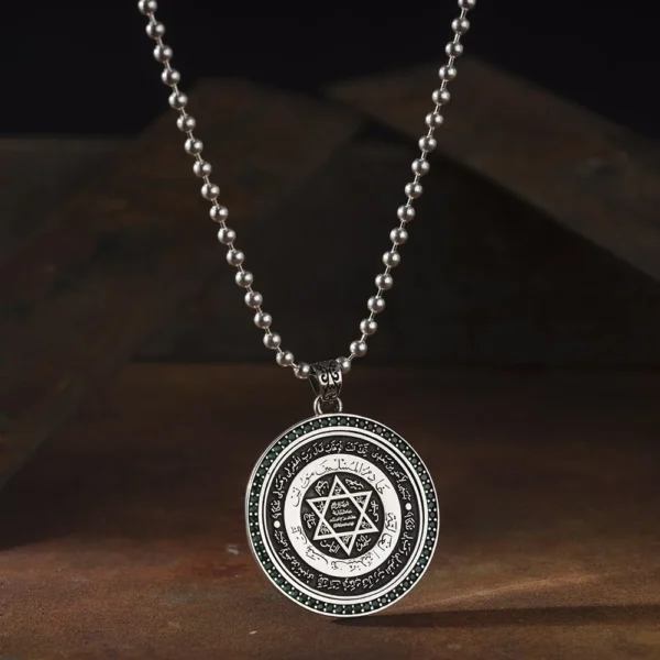 Yeşil Zirkon Mührü Süleyman Madalyon Kolye