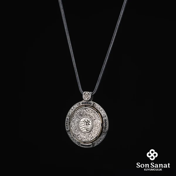 Yuvarlak Ayetel-i Kürsi Çift Taraflı Dönmeli Madalyon Kolye
