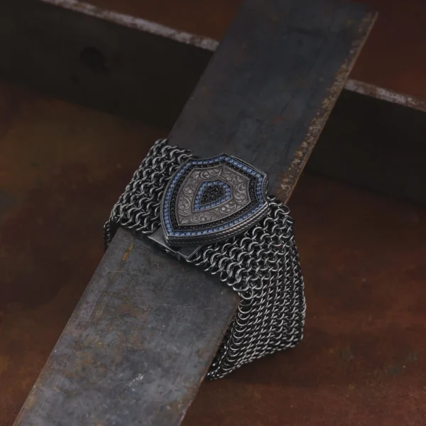Safir Taşlı Zırh Örgü Kalkan Bileklik