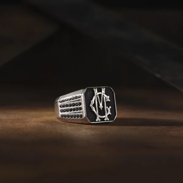 İtalik Cam Kırığı Harfli Gümüş Yüzük