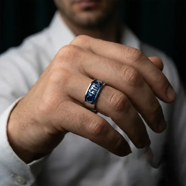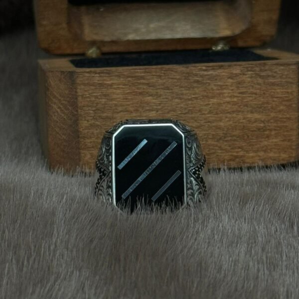 Üzerine Yargı Modelli ve Mine Kaplı 925 Ayar Gümüş Erkek Yüzük