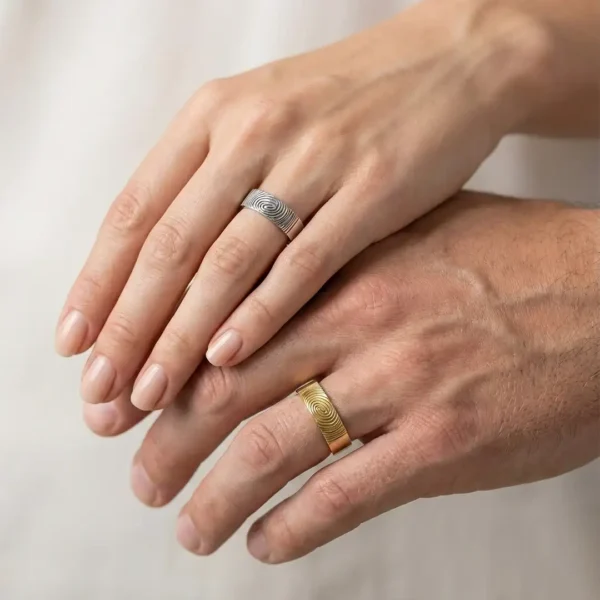 Parmak İzi Gümüş Alyans Set