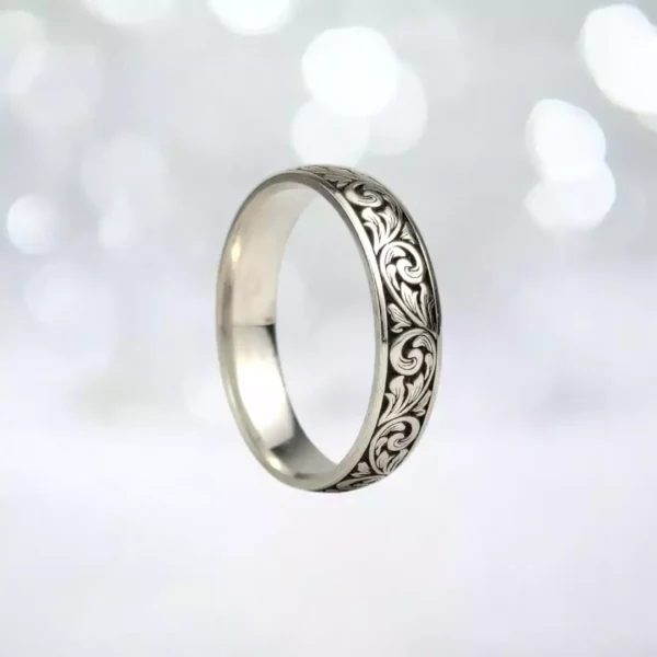 İnce Gravür Gümüş Alyans